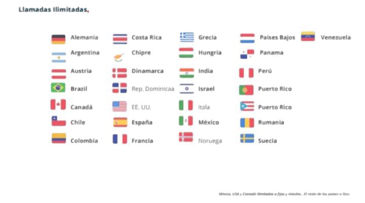 Planes con llamadas ilimitadas a fijos de más de 26 países.